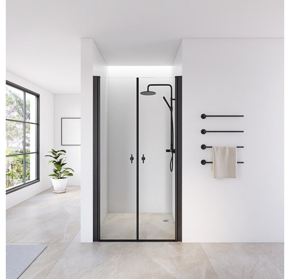 HOME DELUXE Dusch-Pendeltür LAVEA Klarglas Schwarz - Größenauswahl80x195 cm, Justiermöglichkeit bis zu 5 cm, Soft-Close-Mechanismus, Nischentür, Duschabtrennung, Dusche