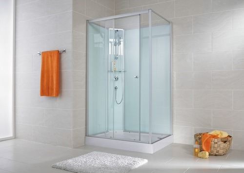 • Die Duschkabine enthält eine Duschwanne, Rückwände aus robustem Sicherheitsglas und ein praktisches Funktionspaneel