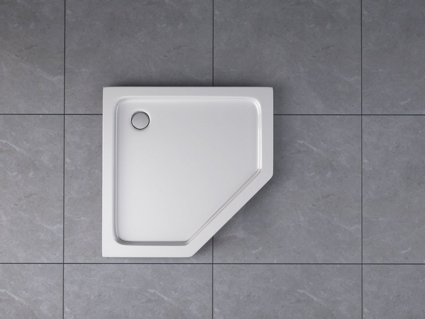 • Die fünfeckige Acrylduschtasse in Alpinweiß ist leicht zu reinigen und einfach zu montieren