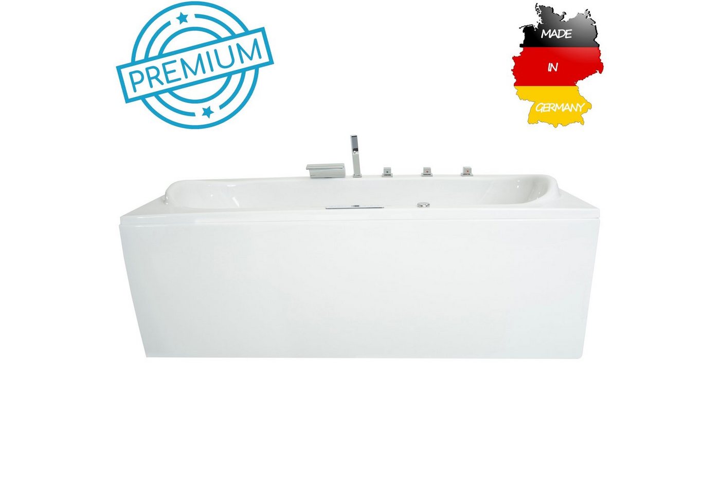 Basera® Whirlpool-Badewanne PREMIUM Indoor Whirlpool Badewanne Palau 180 x 80 cm20 Massagedüsen, Heizung, Ozongenerator, Bodenansaugung, Wasser... - Hochglanz Weiß