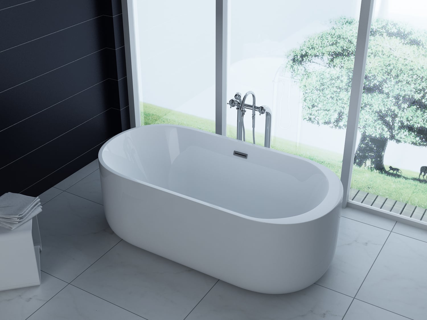 PureHaven freistehende Luxus Acryl-Badewanne 170x80 cm elegant inkl. Überlaufschutz und Siphon (200 l, Weiß)