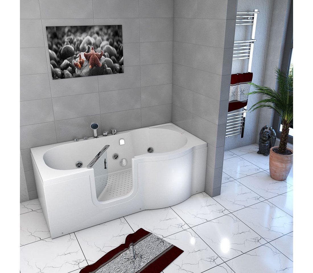 • Die Wanne hat Außenmaße von 170x85cm und eine verstärkte Tür aus glasfaserverstärktem Sanitär-Acryl für Sicherheit und Dichtheit.