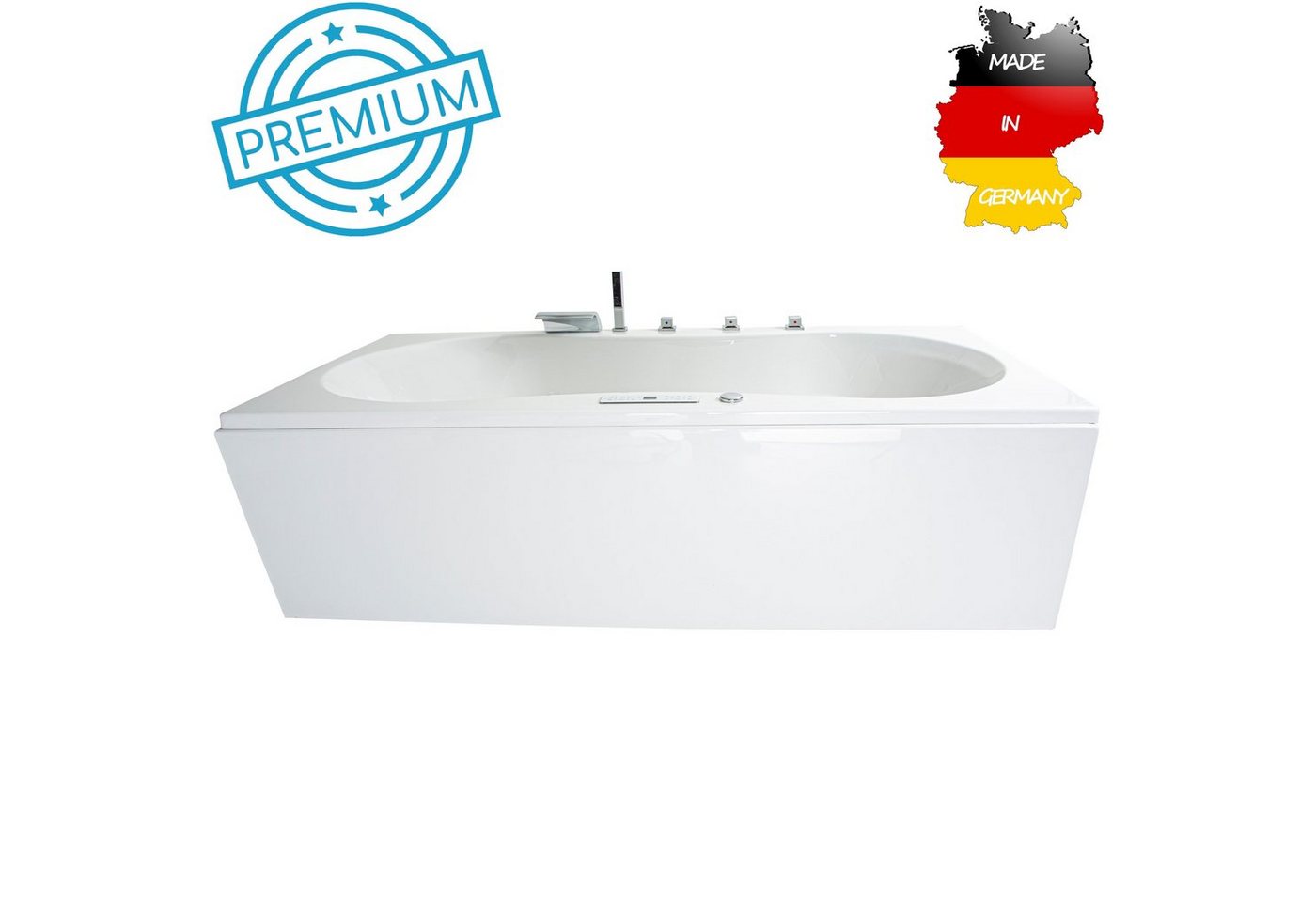 Basera® Whirlpool-Badewanne PREMIUM Palma 190 x 90 cmweiß, 20 Massagedüsen, Heizung, Ozongenerator