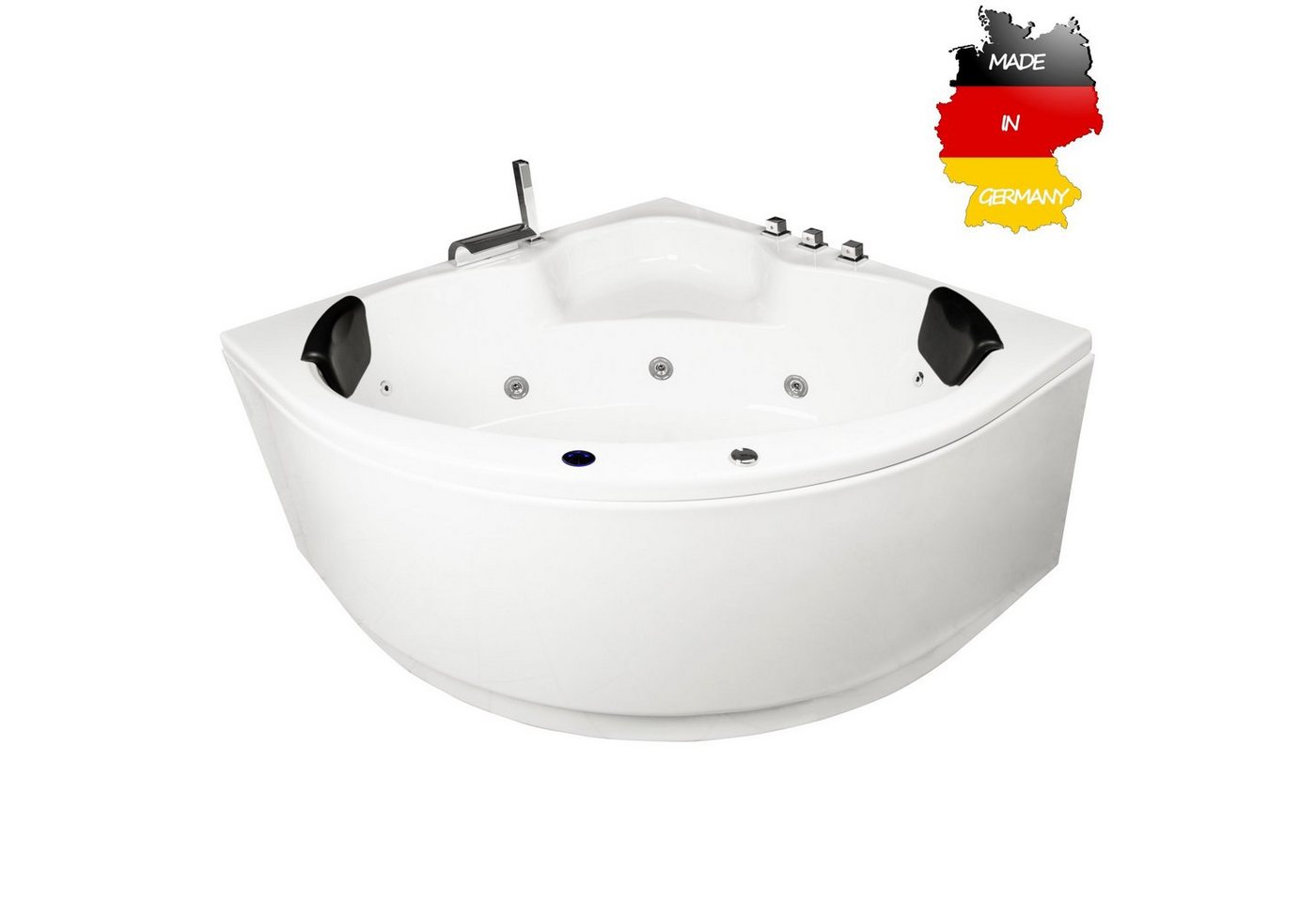 Basera® Whirlpool-Badewanne BASIC Indoor Eck-Whirlpool Badewanne Maui 130 x 130 cmmit 13 Massagedüsen, Wasserfall, LED - Hochglanz Weiß