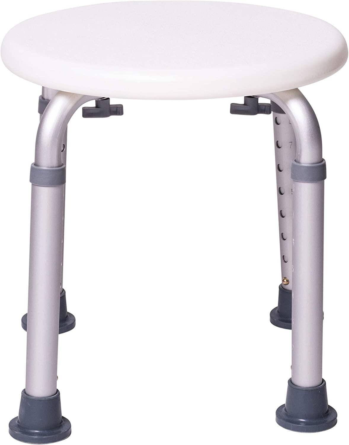 Name ONVAYA® Duschhocker rund weiß aus Kunststoff | 150kg | Badhocker höhenverstellbar | Duschsitz | Duschstuhl | Duschhilfe