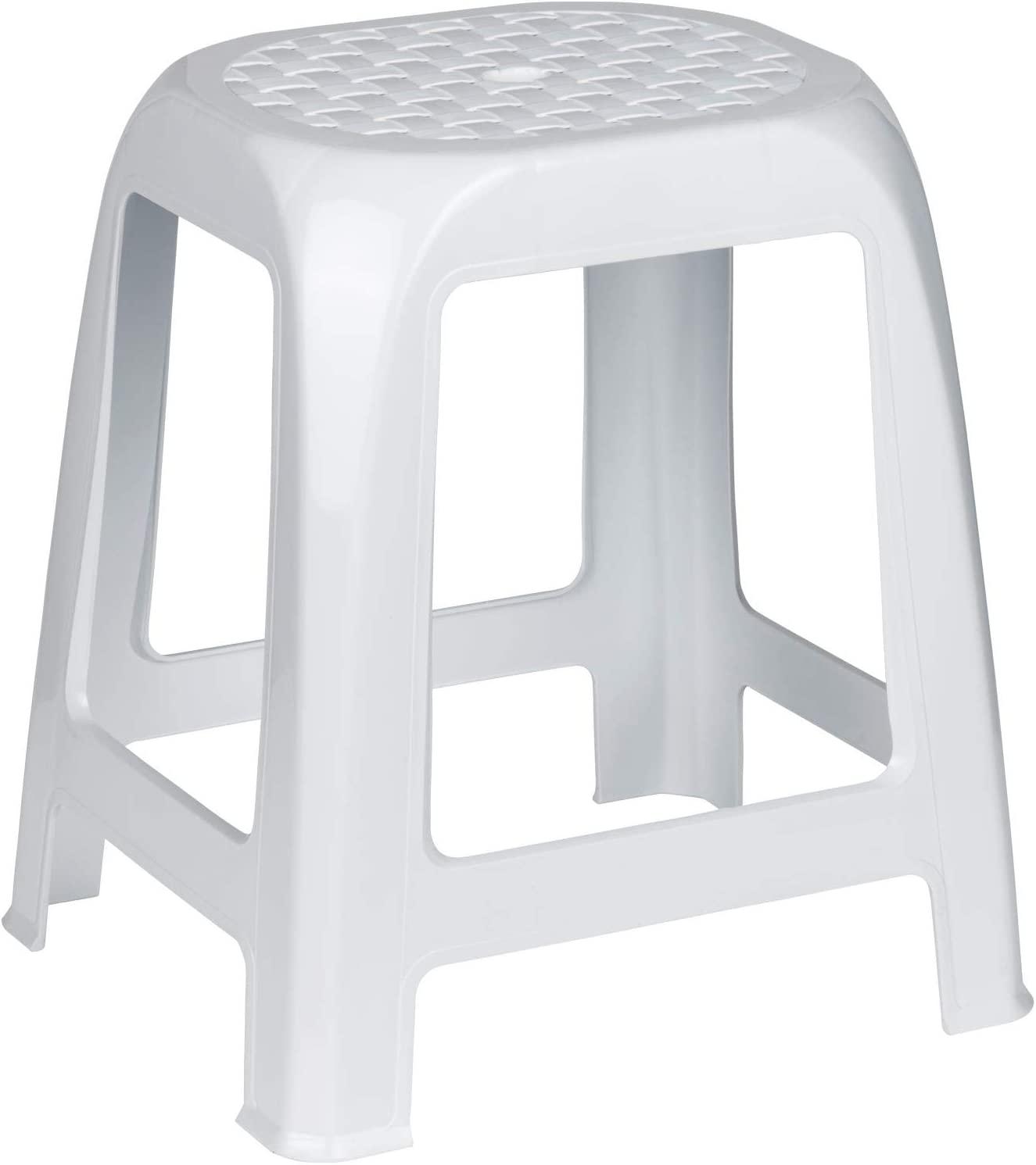 Kreher Hocker aus Kunststoff in Weiß mit einer eleganten Sitzfläche im Rattan Design. Mit einer Höhe von 46 cm und einer Traglast von maximal 100 kg ist dieser Hocker ideal für Dusche, Bad und Haushalt. Die Sitzfläche in Rattan-Optik (41 x 35 cm) bietet vielseitige Nutzungsmöglichkeiten, sei es zum Sitzen, Füße hochlegen oder als Ablage. Hergestellt aus hygienischem, schimmelresistentem Kunststoff (PP) mit stabilen Füßen und Querverstrebungen für optimale Sicherheit. **Highlights** - Vielseitig einsetzbar: Sitzen, Füße hochlegen, Ablage - Hygienisches Material: Schimmelresistenter Kunststoff - Stabile Konstruktion: Robuste Füße und Querverstrebungen - Platzsparend: Ideal für kleine Räume - Leicht zu reinigen: Praktisch für den täglichen Gebrauch **Produkteigenschaften** - Farbe: Weiß - Material: Kunststoff (PP) - Sitzfläche: Rattan-Optik (41 x 35 cm) - Höhe: 46 cm - Traglast: max. 100 kg