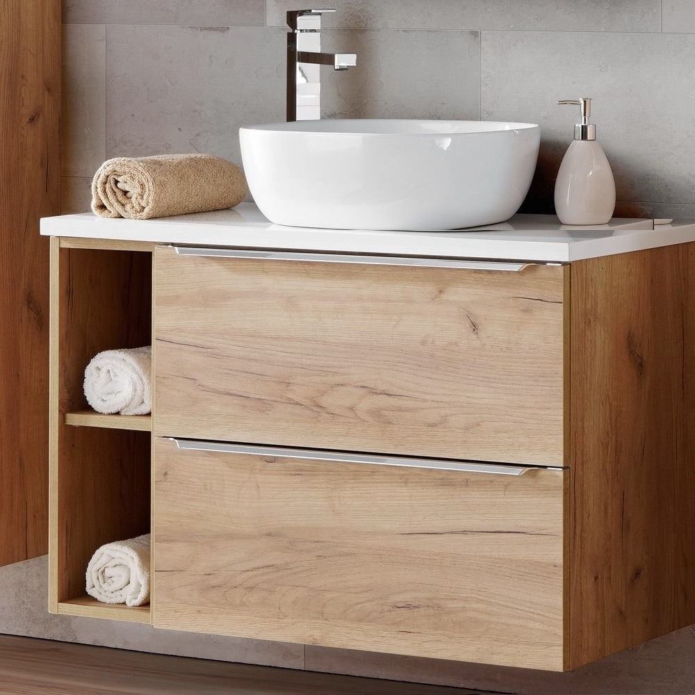 | Name | Waschtischunterschrank 80cm mit Keramik-Aufsatzbecken TOSKANA-56 in Wotaneiche B/H/T ca. 81/74,5/46 cm |