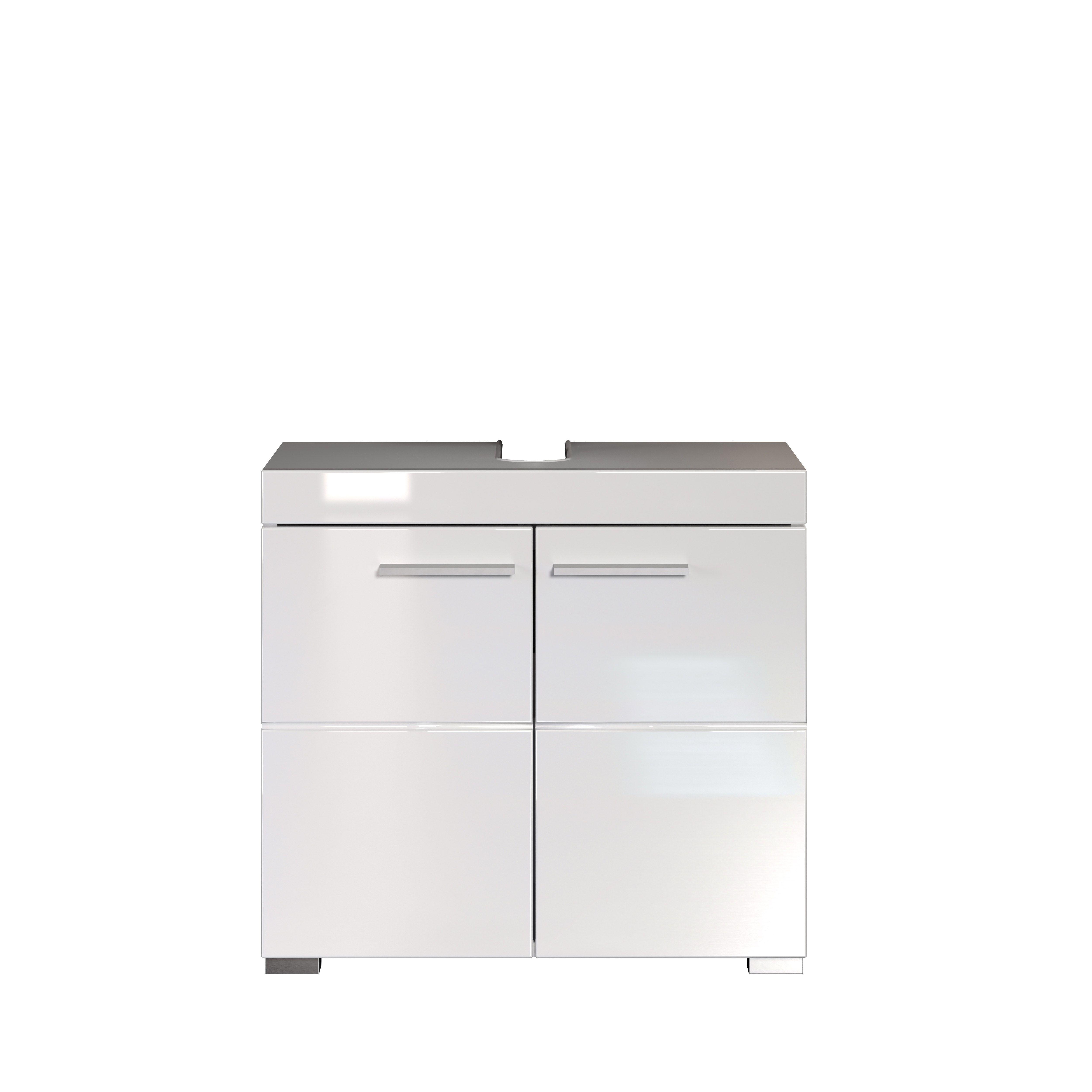 Gerade geformt und mit dezenten optischen Details ausgestattet: Der Waschbecken Unterschrank "Amanda" in Hochglanz weiß ist ein perfekter Vertreter neuen Wohndesigns und für moderne Badezimmer wie geschaffen. Das Modell punktet nicht nur mit seiner wunderbaren Schlichtheit, sondern beispielsweise ebenfalls mit samtig wirkenden Fronten in edlem Hochglanz weiß. Die Fronten sind tiefgezogen, wodurch es keine Umleimerkante gibt. Türen und Seiten lassen sich mit einem weichen Tuch gut reinigen. Hinter den beiden Türen, die mit edlen Griffleisten in Alu-Optik ausgestattet sind und wunderbar sanft öffnen und schließen, befindet sich eine zusätzliche Einlegeplatte. Dank der Platte können Sie eine Vielzahl der im Badezimmer benötigten Produkte wie Reiniger und Kosmetik, Handtücher oder Bürsten in dem Badschrank verstauen. Das schlichte Modell ist übrigens so gestaltet, dass es moderne Badmöbelprogramme perfekt ergänzt. Zum Unterschrank liefern wir Ihnen das komplette Montage- und Befestigungsmaterial. Das Modell wird in zerlegtem Zustand versandt. Eine bebilderte Montageanleitung liegt dem Paket bei. **Details:** - Waschbeckenunterschrank Amanda Front MDF Hochglanz weiß tiefgezogen, ohne Umleimerkanten - Korpus weiß Dekor - B/H/T ca. : 60 /56/34 cm - 2 Türen - 1 Einlegeboden (breit) - 2 geschlossene Fächer - Ausschnitt für Ablauf - Einlegeboden höhenverstellbar **Qualität:** Hochwertige Badmöbel in modernem Design Fronten in stabilem MDF, Hochglanz weiß tiefgezogen in Kassetten-Optik, dadurch keine Umleimerkanten und besserer Schutz gegen Feuchtigkeit Korpus weiß, strapazierfähige Melaminbeschichtung Einlegeböden höhenverstellbar Griffleisten in Aluoptik Metallscharniere Pflegeleicht durch glatte Oberflächen, einfach feucht abwischen Viel Stauraum bei wenig Platzbedarf min. 70% FSC®-zertifizierter Holzwerkstoff, aus kontrolliert nachhaltiger Forstwirtschaft **Lieferumfang:** - Zerlegt/Selbstmontage - inkl. bebilderte Aufbauanleitung Montage- und Befestigungsmaterial - Dekoration, Waschbecken, Beimöbel, Elektrogeräte und Armaturen sind nicht enthalten