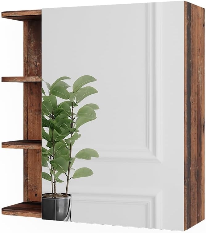 Der Vicco Badezimmerspiegelschrank "Fynn" vereint Funktionalität und Stil in einem eleganten Design. Mit großzügigen Ablagen bietet er ausreichend Stauraum für Ihre Pflegeprodukte und Accessoires. Der integrierte Spiegel erleichtert das morgendliche Styling und verwandelt Ihr Badezimmer in einen komfortablen Rückzugsort. **Highlights** - Integrierter Spiegel für einfaches Styling - Großzügige Ablagen für optimalen Stauraum - Elegantes Oldstyle-Design - Robuste Spanplatte mit Melaminharzbeschichtung - Leichtes Gewicht von 14,9 kg **Produkteigenschaften** - Farbe: Oldstyle - Maße (BxHxT): 62 x 64 x 20,8 cm - Material: Spanplatte, 16 mm - Zusätzliches Material: Glas - Oberfläche: Melaminharzbeschichtung - Artikelgewicht: 14,9 kg - Artikelgewicht inkl. Verpackung: 16,4 kg **Lieferumfang** - Spiegelschrank - Montageanleitung - Montagematerial - Dekoration nicht enthalten