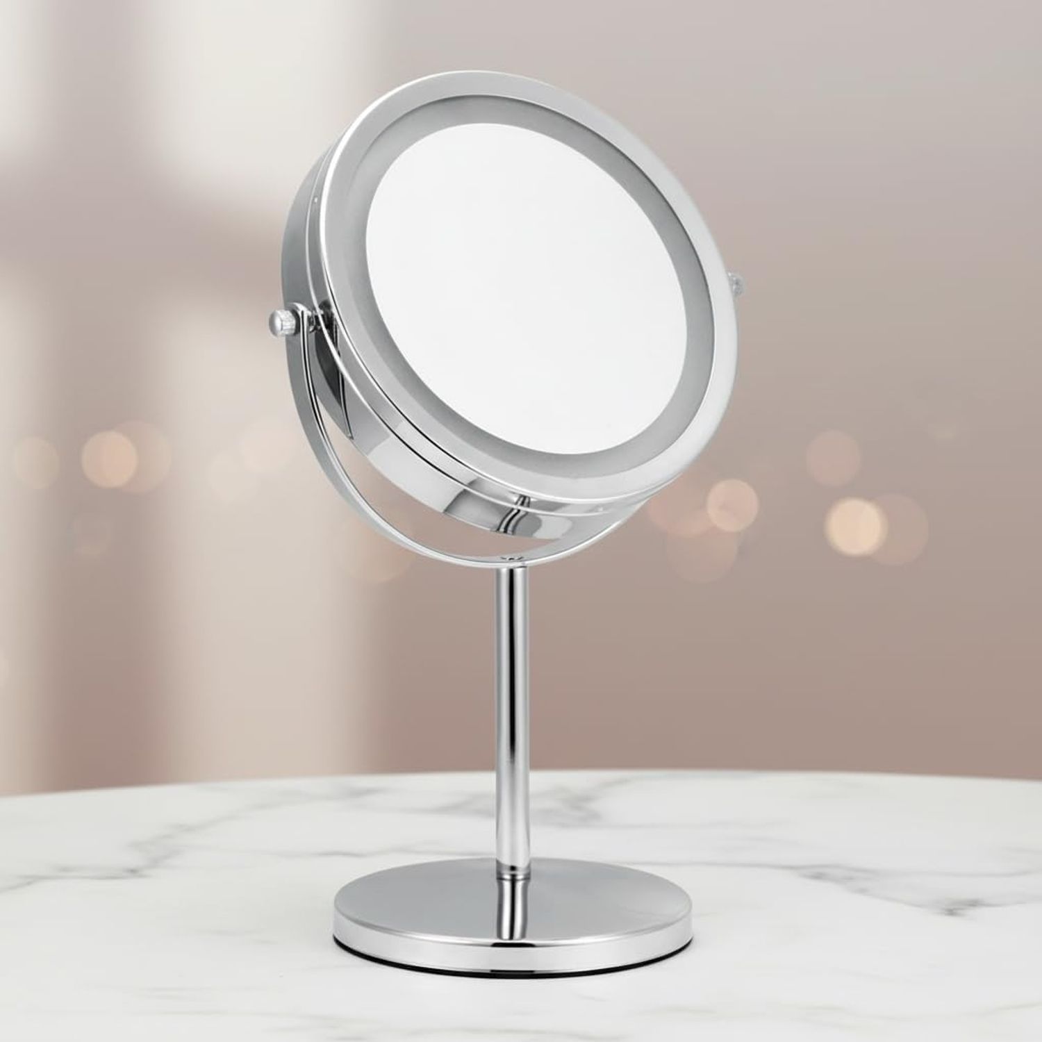 Der Mucola LED-Kosmetikspiegel ist der ideale Begleiter für alle Beauty-Enthusiasten. Mit einer 10-fachen Vergrößerung und einer integrierten LED-Beleuchtung sorgt er für optimale Lichtverhältnisse und präzise Gesichtspflege. Der Spiegel ist dreh- und schwenkbar, lässt sich einfach montieren und passt dank seines kompakten Designs auch in jede Tasche. Perfekt für den Einsatz im Badezimmer oder unterwegs. **Highlights** - 10-fache Vergrößerung für präzises Schminken - Integrierte LED-Beleuchtung für optimale Ausleuchtung - Dreh- und schwenkbare Funktion für maximale Flexibilität - Wandmontage möglich für platzsparende Nutzung - Modernes Design in Silber, ideal für jedes Badezimmer **Produkteigenschaften** - Durchmesser gesamt: ca. 20 cm - Durchmesser Spiegelfläche: ca. 13 cm - Länge: ca. 29 cm - Stärke: ca. 2 cm - Material: Edelstahl und Glas - Farbe: Silber - Batterie betrieben (4 x AAA-Batterie) **Lieferumfang** - 1 x Kosmetikspiegel mit 10-facher Vergrößerung, Farbe Silber - AAA-Batterien sind nicht im Lieferumfang enthalten