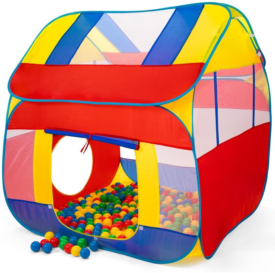 Mit diesem super großen Kinderspielzelt mit 300 Bällen werden Ihre Kinder einen großen Spielspaß haben. Das Spielzelt wird geliefert mit einer Tragetasche, wodrin die einzelnen Elemente platzsparend verstaut werden können. Die vielen transparenten Flächen garantieren eine sichere Beaufsichtigung und gute Luftzirkulation Technische Daten: - 300 Bälle inklusive - super schneller Aufbau durch aufklappen der Elemente - das Zeltdach ist abnehmbar - die Netzfenster sind luftdurchlässig - runde Formen und lustige Farben - Farben der Bälle rot, blau, grün und gelb, Durchmesser: ca. 5,5cm - der Eingang kann offen oder geschlossen verwendet werden - sehr platzsparend aufzubewahren - kann mit feuchtem Tuch gereinigt werden - Material: Stoff 100% Polyester, Stangen: elastischer Metalldraht Maße und Gewicht: - Breite ca. 123cm - Höhe ca. 126cm Lieferumfang: - 1x Spielzelt inkl. 300 Bälle - 1x Aufbewahrungstasche