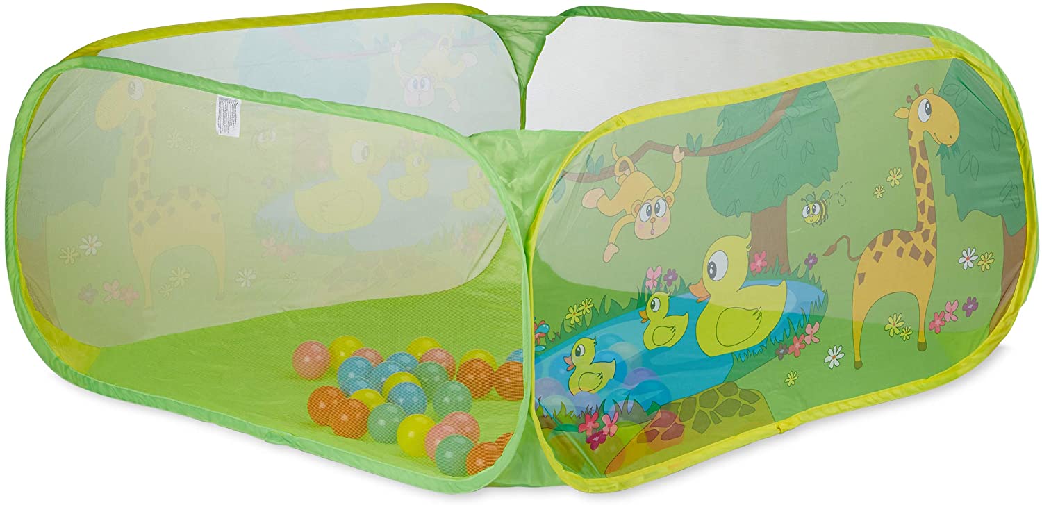 | Name | Relaxdays Bällebad Baby, quadratischer Bällepool mit 50 Bällen, Popup-Bällebecken HxB 50x110cm, BPA frei, ab 6 M., bunt |