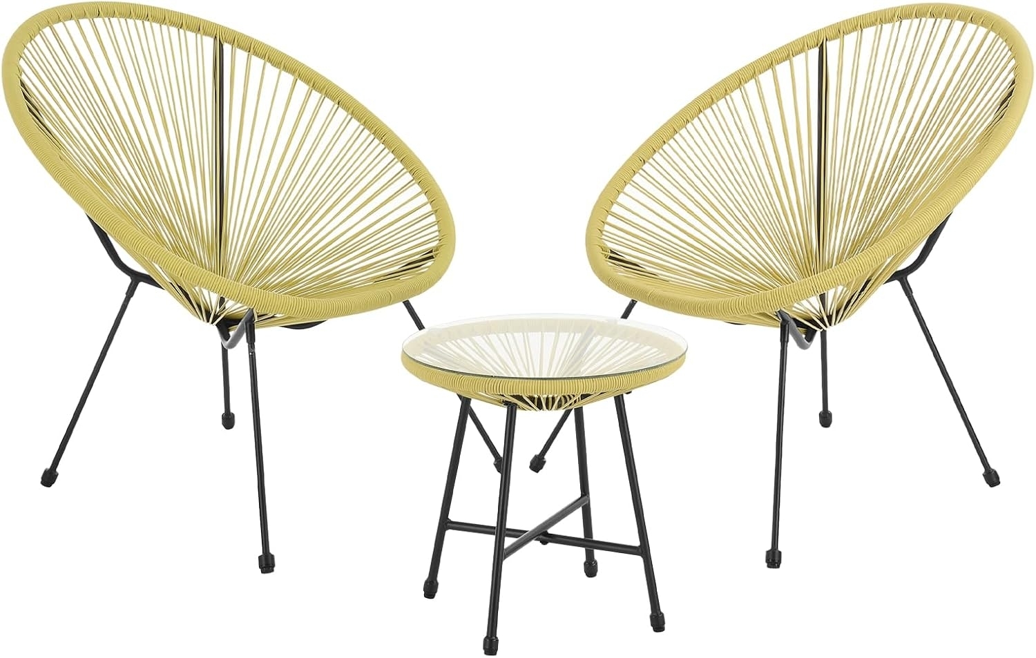 Das SVITA 'Bali' Balkon-Möbel 3-TLG. in Gelb ist die perfekte Sitzgruppe für Ihre Wohnung, den Wintergarten, die Terrasse, den Garten oder den Balkon. Sie besteht aus 2 Stühlen (je ca. 70 x 70 x 82 cm) und einem Tisch (ca. 45 x 47 cm). Das Gestell aus pulverbeschichtetem Stahl ist mit hochwertigem Poly-Rattan Kunststoffgeflecht umwickelt, was für Langlebigkeit und Pflegeleichtigkeit sorgt. **Highlights** - Gestell aus pulverbeschichtetem Stahl für Stabilität - Hochwertiges Poly-Rattan Kunststoffgeflecht für Langlebigkeit - Beistelltisch mit Glasplatte für praktische Nutzung - Pflegeleichtes Polyrattan für einfache Reinigung **Produkteigenschaften** - Sitzgruppe bestehend aus 2 Stühlen und 1 Tisch - Stuhlmaße: je ca. 70 x 70 x 82 cm (BxTxH) - Tischmaße: ca. 45 x 47 cm (øxH) - Geeignet für Wohnung, Wintergarten, Terrasse, Garten oder Balkon - Einfache Reinigung mit einem feuchten Tuch **Lieferumfang** - 2 Gartensessel - 1 Beistelltisch mit Glasplatte