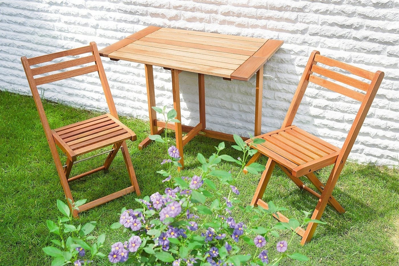 | Beschreibung | Eignet sich hervorragend für den kleinen Balkon: das moderne Gartenmöbelset »Porto« aus dem MERXX-Sortiment. Es bietet Platz für 2 Personen, um das schöne Wetter gemeinsam zu genießen. Zu den funktionalen Extras zählt der rechteckige Tisch, den du einseitig ein- und ausklappen kannst. Die beiden Sitzgelegenheiten sind in einer klassischen Sprossenoptik gehalten. Die Outdoor-Möbel werden in einer robusten Qualität gefertigt, wobei die Gestelle aus FSC®-zertifiziertem Hartholz bestehen. Final hochwertig eingeölt, erweisen sich die Oberflächen als witterungsbeständig. Die Stühle und den Tisch klappst du bei Bedarf platzsparend zusammen. Reizvolle Lösung für den kleinen Balkon oder zum an der Wand aufstellen: das moderne Gartenmöbelset »Porto« von MERXX in naturbelassenen Holztönen. |