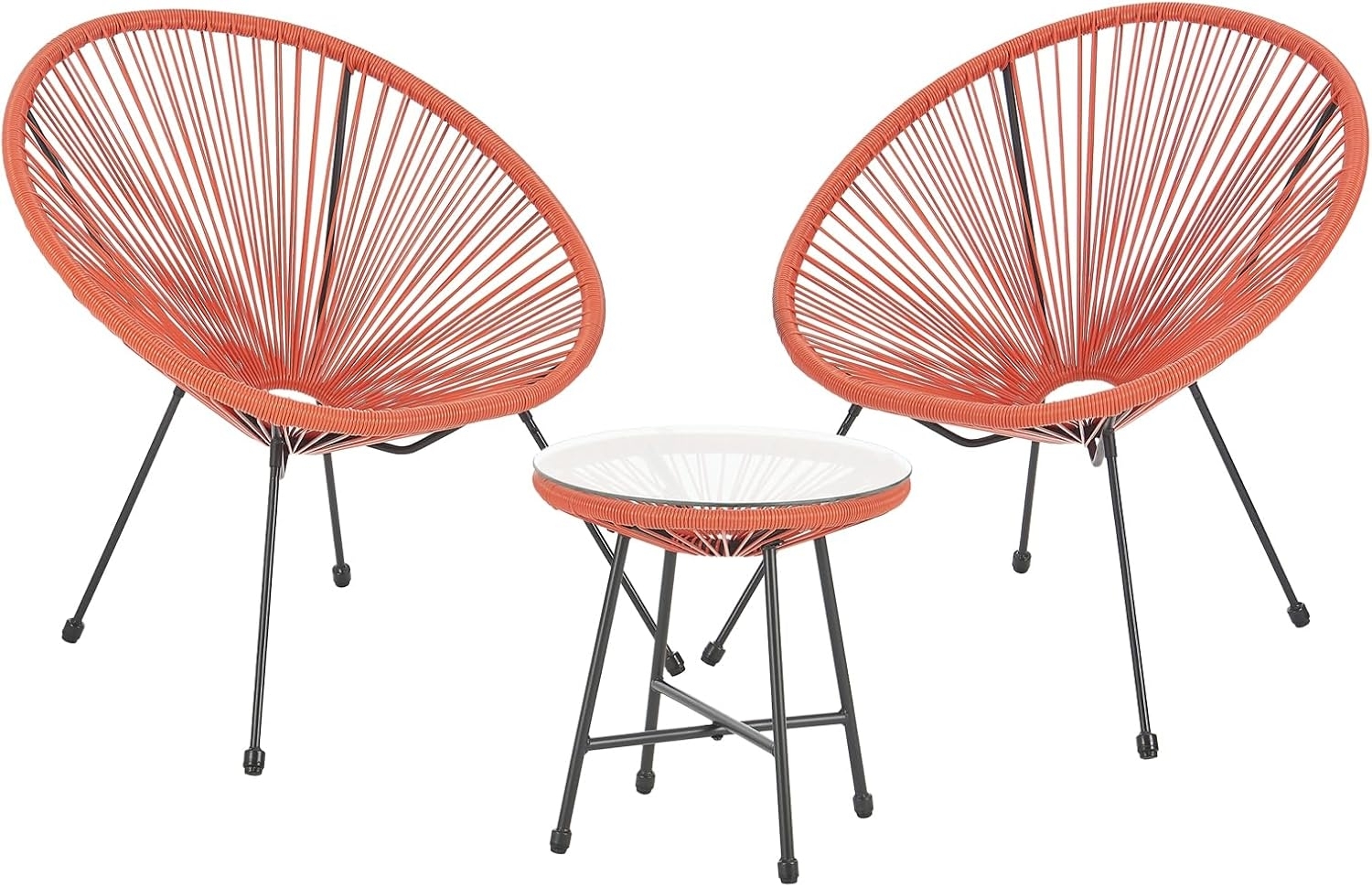 Das SVITA Bali Balkon-Möbel 3-TLG. Polyrattan Lounge-Set in Terracotta Orange bietet eine stilvolle und komfortable Sitzgelegenheit für Ihren Balkon oder Garten. Die Sitzgruppe besteht aus 2 Gartensesseln (je ca. 70 x 70 x 82 cm) und einem Beistelltisch (ca. 45 x 47 cm). Das pulverbeschichtete Stahlgestell sorgt für Stabilität, während das hochwertige Poly-Rattan Kunststoffgeflecht Langlebigkeit und Pflegeleichtigkeit garantiert. **Highlights** - Gestell aus pulverbeschichtetem Stahl für Stabilität - Hochwertiges Poly-Rattan Kunststoffgeflecht für Langlebigkeit - Beistelltisch mit Glasplatte für praktische Nutzung - Pflegeleicht und einfach zu reinigen **Produkteigenschaften** - Farbe: Terracotta Orange - Material: Stahlgestell, Poly-Rattan Kunststoffgeflecht - Maße Gartensessel: ca. 70 x 70 x 82 cm (BxTxH) - Maße Beistelltisch: ca. 45 x 47 cm (øxH) - Geeignet für Wohnung, Wintergarten, Terrasse, Garten und Balkon - Schutz vor Wettereinflüssen empfohlen für lange Lebensdauer **Lieferumfang** - 2 Gartensessel - 1 Beistelltisch mit Glasplatte