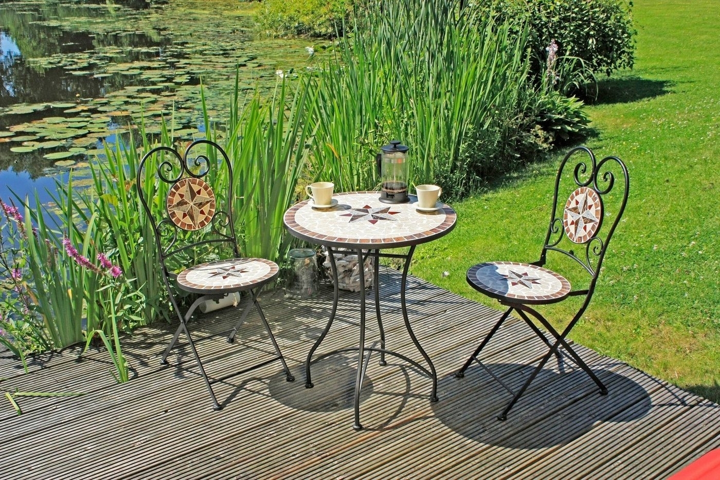 | Name | Sitzgruppe, 3-teilig, 1 Tisch, 2 Stühle Mosaik Design |