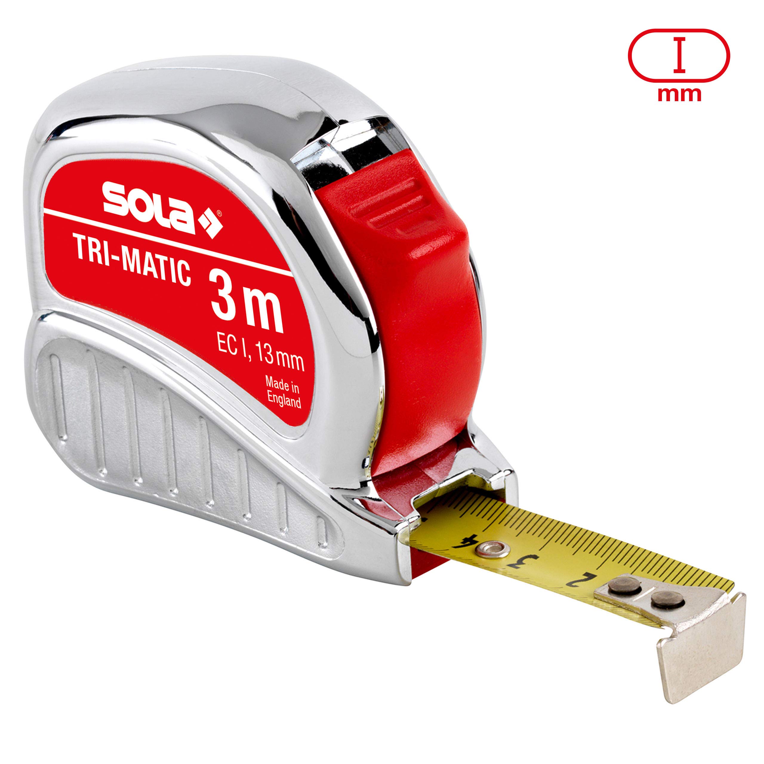 Das Stahlbandmaß Tri-Matic 3 m von Sola bietet Handlichkeit, Genauigkeit und ein gutes Preis-Leistungs-Verhältnis. Mit einem stabilen Metallgehäuse und einer Antireflexbeschichtung ermöglicht es präzise Messungen für verschiedene Anwendungen.