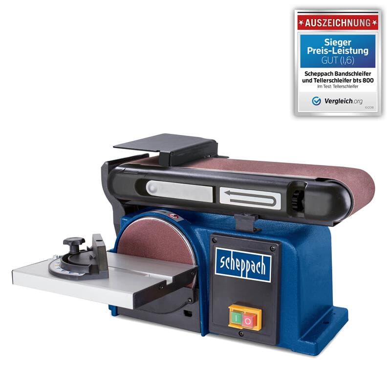 Der Scheppach Band- und Tellerschleifer BTS800 bietet eine Vielzahl von Vorteilen für den Anwender. Mit einer Leistung von 370W und einer Geschwindigkeit von 7 Metern pro Sekunde ermöglicht er effizientes Schleifen großer Flächen. Der verstellbare Auflagetisch kann zwischen 90° und 45° eingestellt werden, um präzise Winkel zu schleifen. Die solide Verarbeitung des Gehäuses sorgt für Stabilität während des Gebrauchs.