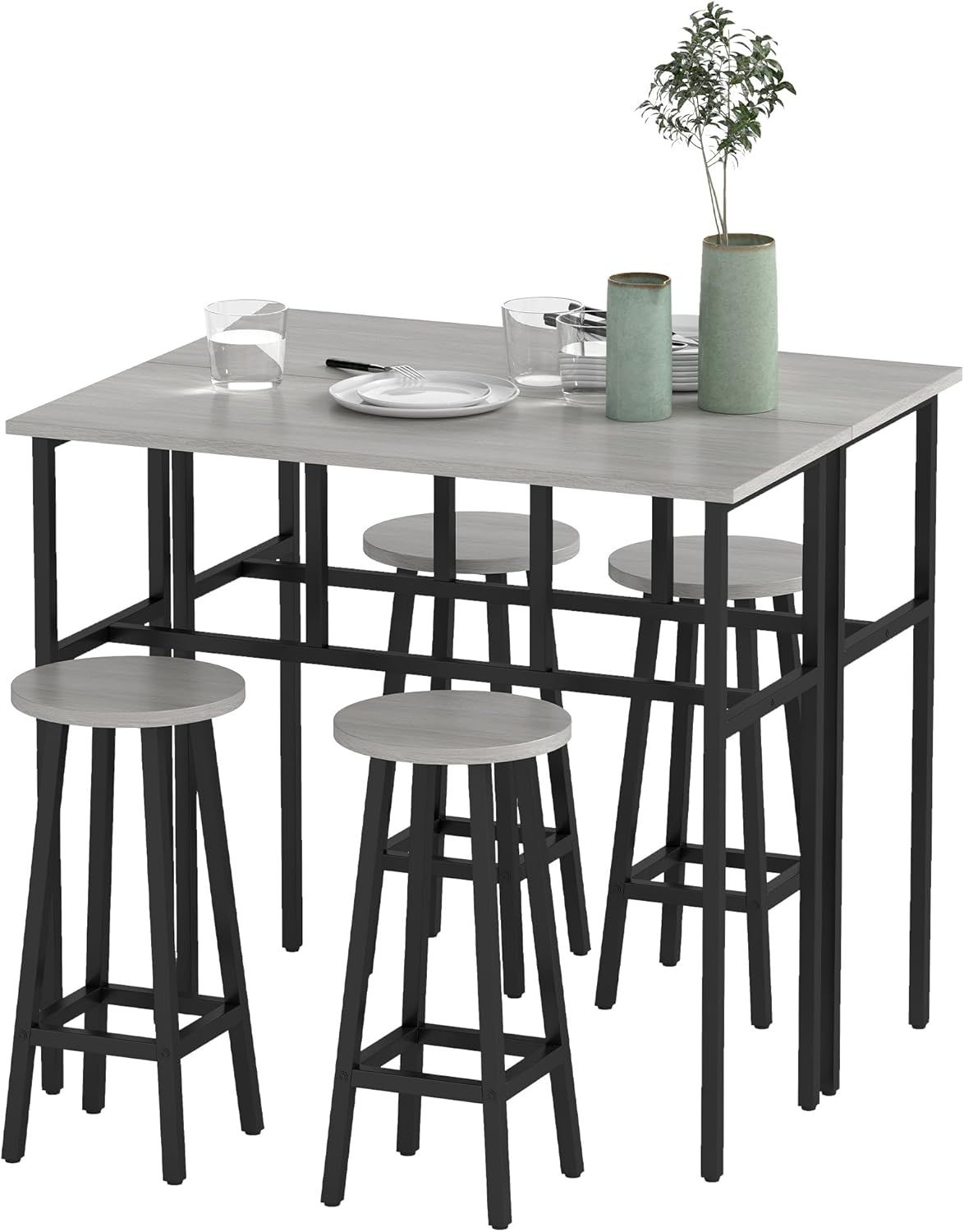 | Name | HOMCOM Bargruppe Bartisch-Set im Industriedesign, (Set, 6-tlg), 6-teilig Essgruppe 2 Bartisch mit 4 Stühlen Grau, Schwarz |