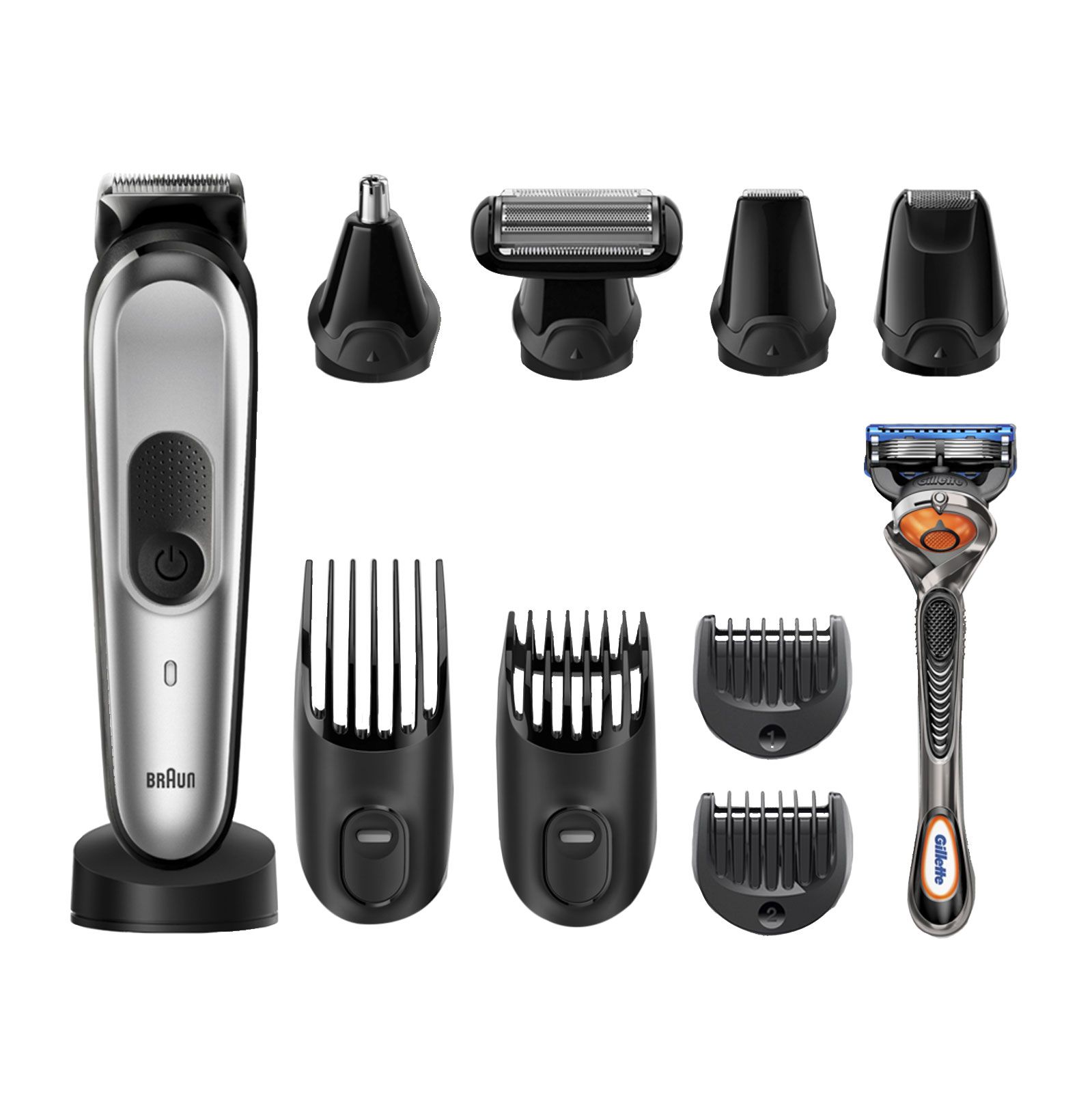 | Lieferumfang | Barttrimmer und Gesichtshaarschneider, Mini-Rasierer, Präzisionstrimmaufsatz, Haarschneider, Haartrimmer für den Körper, die Ohren und die Nase, Gillette Fusion5 ProGlide Rasierer mit FlexBall-Technologie, Aufbewahrungstasche, Bedienungsanleitung |