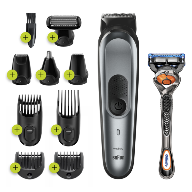 | Lieferumfang | 1x Bart- und Haartrimmer 1x Ohren- und Nasenhaartrimmer 1x Detail-Trimmer 1x Körperhaartrimmerkopf 1x Mini-Präzisionsscherkopf 1x 4 Kammaufsätze 1x Aufbewahrungsbeutel 1x Gillette Rasierer 1x Netzteil-Ladegerät |