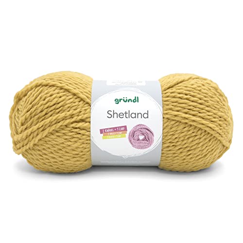 Gründl Shetland Wolle (modisches und weiches Strickgarn aus 80% Polyacryl und 20% Wolle, 100 g / 170 m, Nadelstärke: 7-8, 1 x 100 g), curry