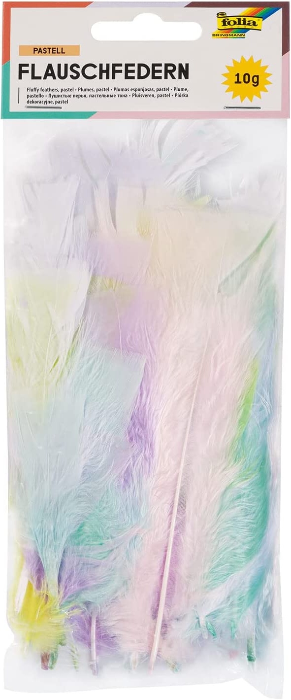 | Name | folia 53219 - Federn Pastell, Flauschfedern, Kunstfedern, 10 g, farbig sortiert in zarten Pastellfarben- ideal für kreative Bastelarbeiten, Masken, Kostüme |
