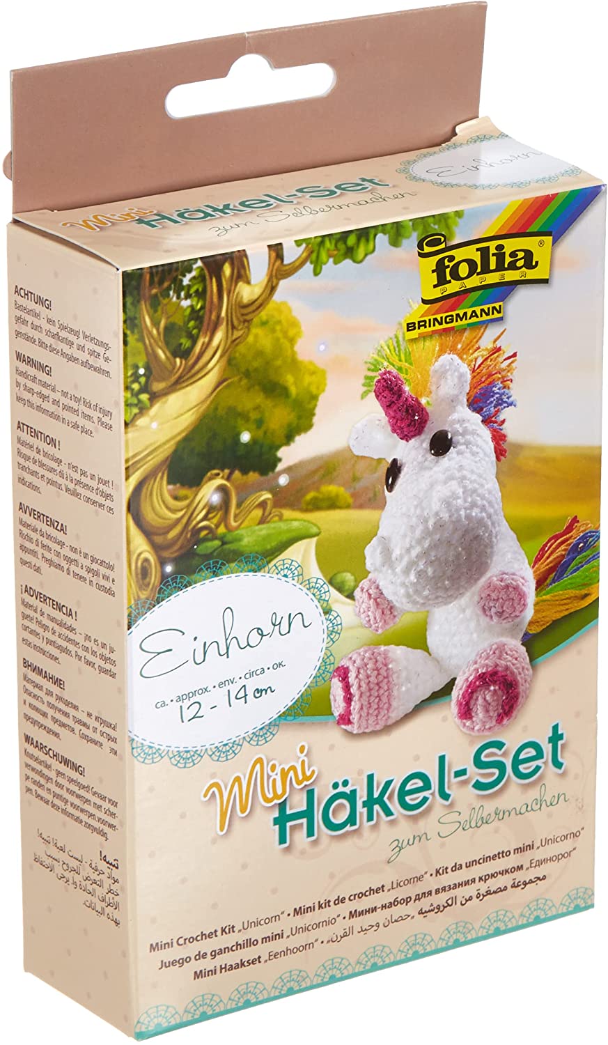 | Name | folia 23910 - Mini Häkelset Einhorn, Komplettset zur Erstellung von einem selbst gehäkelten niedlichen Einhorn, ca. 12 - 14 cm groß, für Kinder ab 8 Jahren und Erwachsene, als Geschenk |