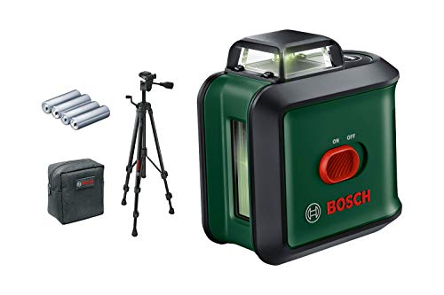 Der Bosch Kreuzlinienlaser bietet eine einfache Handhabung und hohe Genauigkeit, was ihn zu einem praktischen Werkzeug für Mess- und Ausrichtungsarbeiten macht. Mit seinem stabilen Dreibein und den gummierten Füßen bietet er einen sicheren Stand, während der gut sichtbare grüne Laser eine klare Linie zieht. Die robuste Verarbeitung und die gewohnte Qualität von Bosch machen diesen Kreuzlinienlaser zuverlässig in verschiedenen Anwendungen.