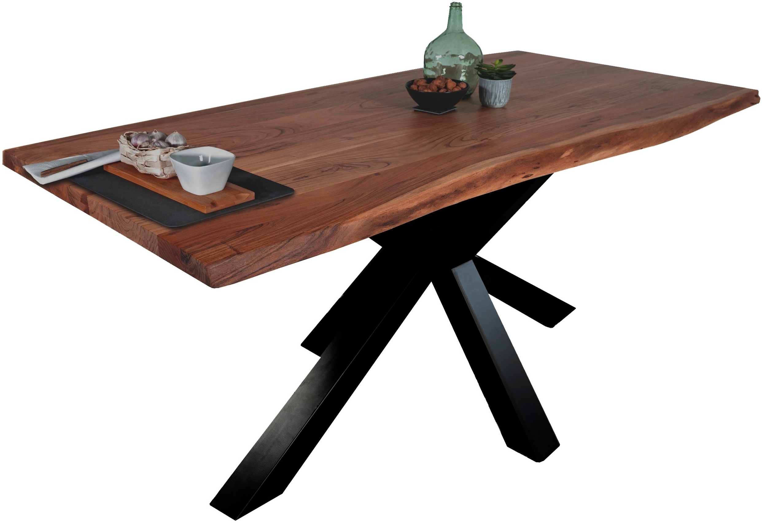 | Name | Esstisch Baumkante massiv Akazie Nussbaum 140 x 80 Spider-Gestell schwarz TIM 135656072 |