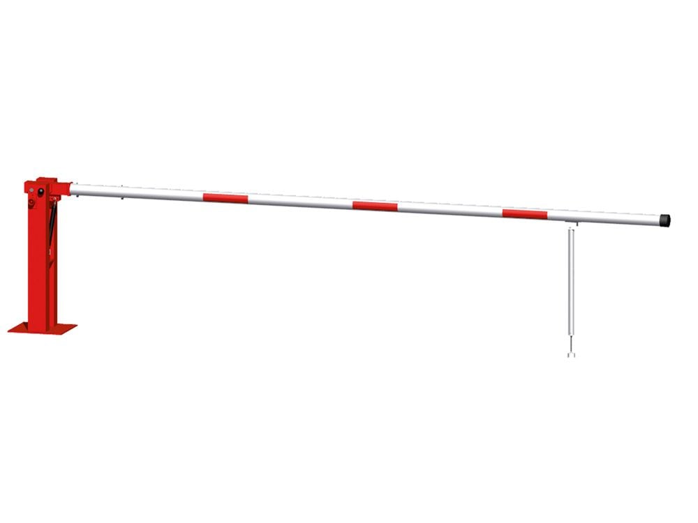 • Der Schrankenbaum ist aus starkwandigem 80 mm Aluminiumrohr, pulverbeschichtet in Weiß und mit rot reflektierenden Streifen für bessere Sichtbarkeit.