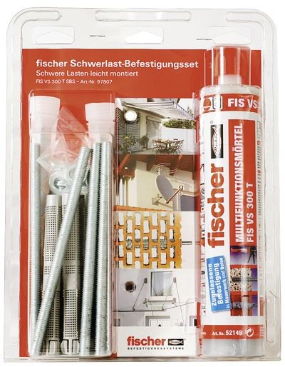 Das fischer Schwerlast-Befestigungsset 300 T SBS Set M10 ist ein Injektionsmörtel, der eine bombenfeste Befestigung von schweren Lasten in Beton und Mauerwerk ermöglicht. Das Set enthält Ankerstangen und -hülsen für einen vielseitigen Einsatz. Der Mörtel ist einfach zu verwenden und erfüllt seine Versprechungen.