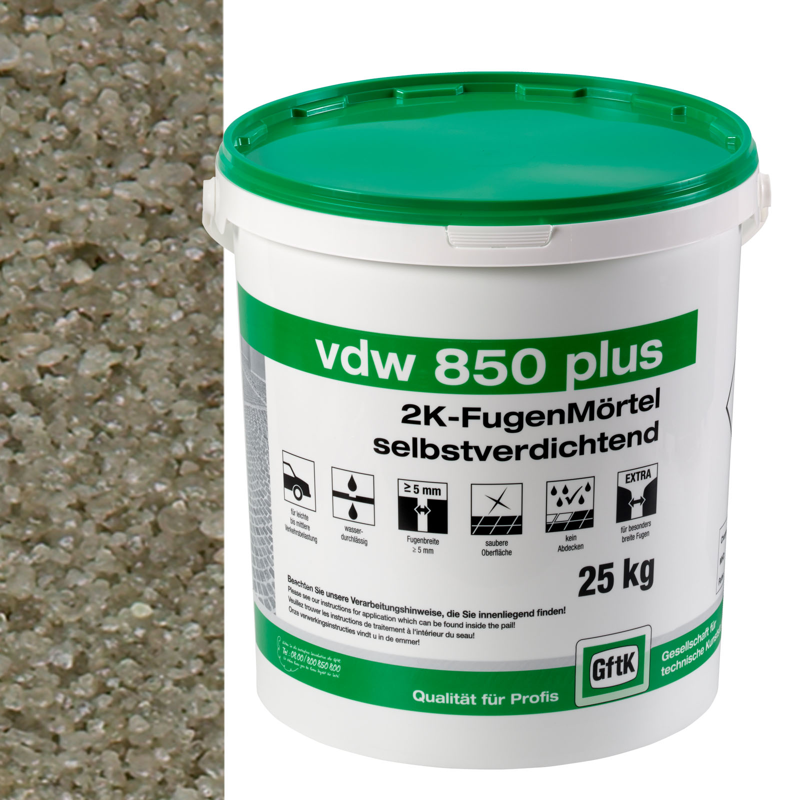 Selbstverdichtend und ideal für befahrene Flächen, auch bei Regen und niedrigen Temperaturen einsetzbar.