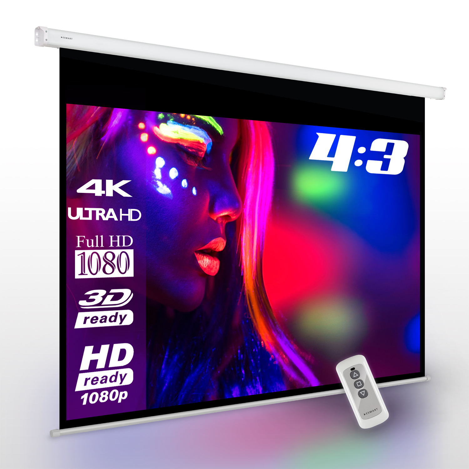 Die ESMART Economy EXM Motor Leinwand bietet eine einfache und bequeme Möglichkeit, um hochwertige Projektionen zu ermöglichen. Die Leinwand ist in der Größe 240 x 180 cm (118'') erhältlich und hat das Format 4:3. Durch die motorisierte Funktion kann die Leinwand einfach per Fernbedienung oder manueller Steuerung bedient werden.