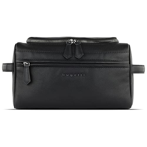 bugatti Bella Kulturbeutel aus echtem LederToilettentasche für den Urlaub in schwarz