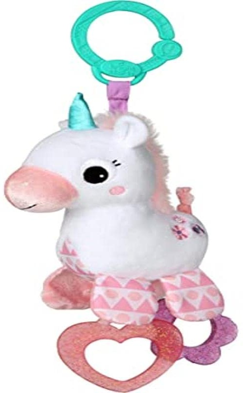 | Name | Bright Starts Spielzeug zum Anbringen an den Kinderwagen, Einhorn, mit 2 Beißringen, rasselt, regt den Tastsinn an |