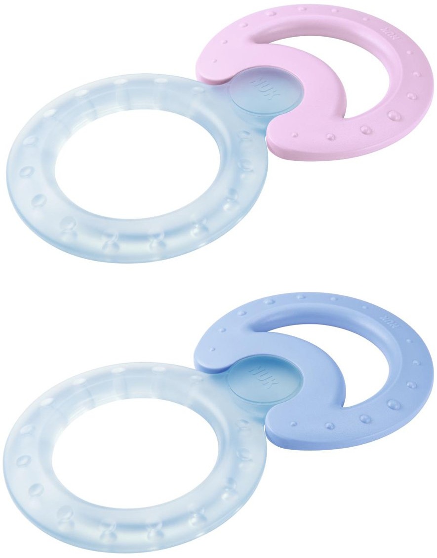 Der NUK Kühlbeissring ist ein kleiner und schmaler Beißring, der besonders für sehr kleine Babys geeignet ist. Er kann in zwei Teile zerlegt werden und ist sterilisierbar, was vielen Eltern wichtig ist. Allerdings wird er nur als Einzelstück geliefert, obwohl auf den Bildern zwei Ringe zu sehen sind. Zudem kühlt der Ring nicht lange und wird schnell warm.
