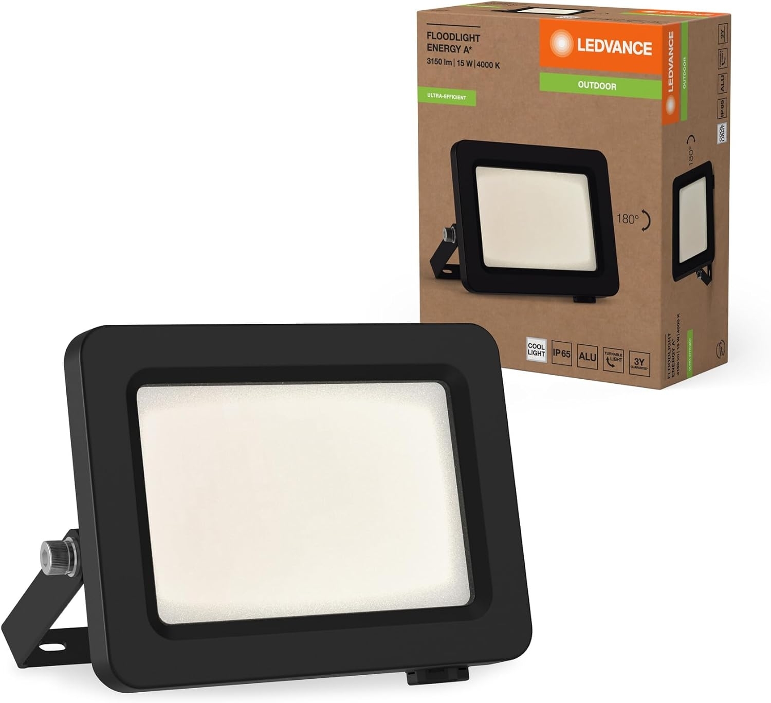 | Name | LEDVANCE LED-Flutlicht mit Energieeffizienzklasse A, schwarzes Aluminiumgehäuse, 15 W, 2600 lm, für Außenanwendungen, kompaktes Design, leichtes Gewicht, einfache Montage |
