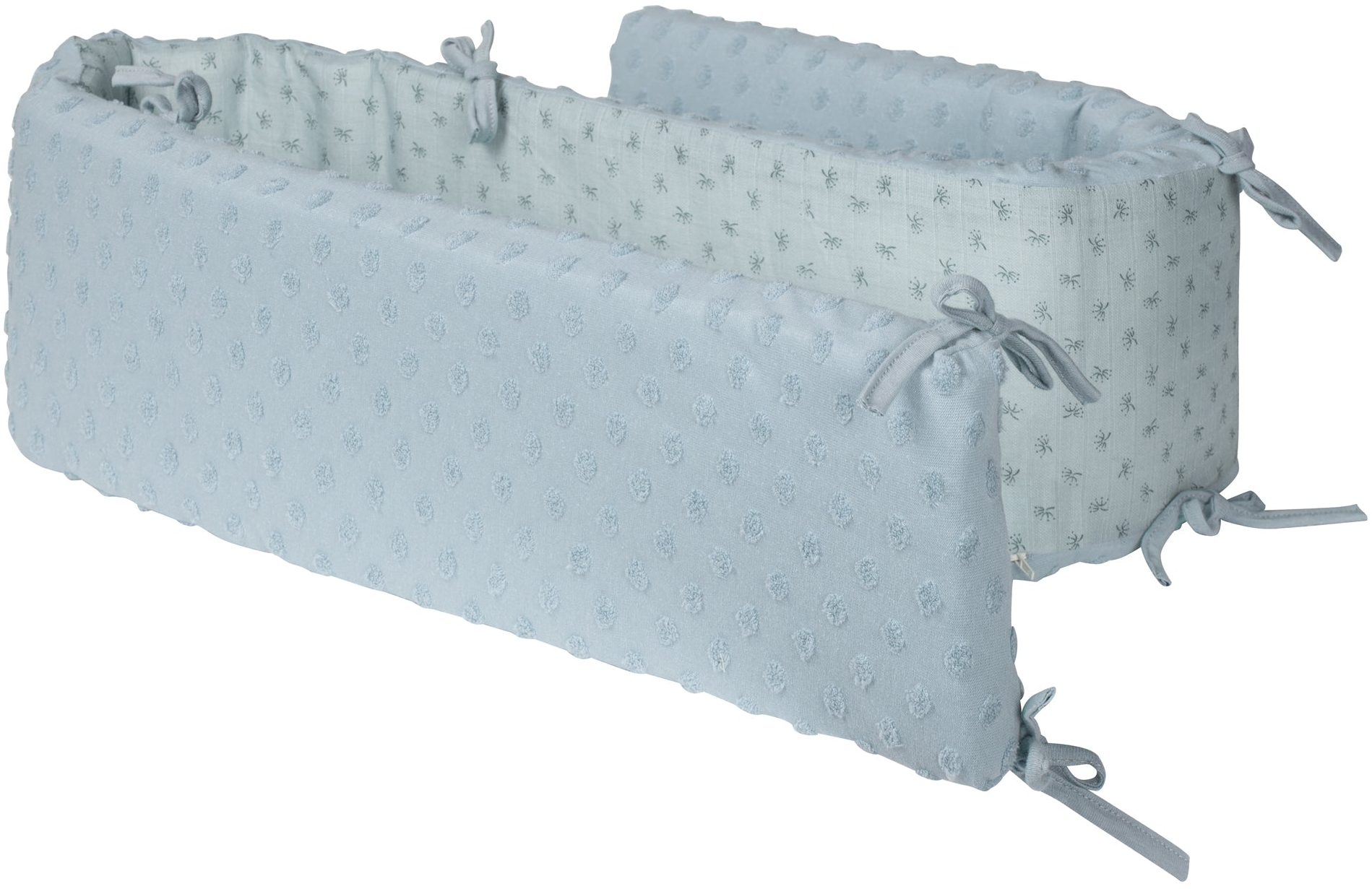 Das roba Nestchen „Lil Planet“ sorgt mit seinem hautfreundlichen, wasseraufnehmenden und extraweichen Bio-Baumwoll-Stoff für ein kuscheliges und trockenes Gefühl im Babybett. Gerade Babys haben ein großes Kuschelbedürfnis und lieben es gemütlich, weich und warm. Das Babynest schenkt Ihrem Baby die nötige Nestwärme und sorgt für liebevolle Geborgenheit. Das Nestchen polstert die Gitterstäbe im Kopfbereich des Babybettchens ab und sorgt dafür, dass die kleinen Gliedmaßen Ihres Babys im Inneren des Bettchens bleiben. Mit diesem Nestchen ist Ihr kleiner Liebling zudem vor Zugluft geschützt. Unsere roba Organic Textilserie „Lil Planet“ in den trendigen Farben Rosa/Mauve, Hellblau/Sky und Silbergrau ist nach dem Global Organic Textile Standard GOTS und nach OEKO TEX® Standard 100 zertifiziert. Die Produkte aus hochwertigem Garn sind hautfreundlich und überraschen mit einem extra weichen Touch und einer neuen Optik. Zur Produktion unserer Bio-Baby-Kollektion verwenden wir reinste, nachhaltige und unbehandelte Materialien. Die roba Bio-Baby-Produkte behalten auch nach vielen Wäschen ihre Form und ihre superweiche Haptik. Dank spezieller Oberflächenbehandlung und Vorwäsche bleiben die Bio-Baby-Produkte superweich. Wir verwenden ausschließlich atmungsaktive Materialien um einer Überhitzung Ihres Babys vorzubeugen. Die roba Organic Textilserie umfasst Produkte aus Naturfasern wie Babydecken, Schlafsäcke, Bettwäsche, Bezüge für Wickelauflagen, Kapuzenhandtücher, Waschlappen sowie Windeln aus Musselin-Stoff. Die Bettumrandung ist bei 40°C waschbar, trocknergeeignet und lässt sich mit Stoffbändern am Babybett befestigen. Vorderseite: Musselin 100 % Baumwolle GOTS, Rückseite: Terry Dot 80 % Baumwolle GOTS, 20 % Polyester, Füllung: Wattierung 100 % Polyester. Passend für Babybetten 60x120 cm oder 70x140 cm. Das roba Nestchen „Lil Planet“ ist 170 cm lang und 16 cm hoch. Passend für Babybetten 60x120 cm oder 70x140 cm. Farbe: Hellblau/Sky.