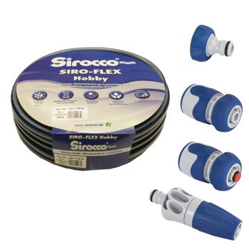• Siro-Flex Hobby im Set mit Siro-Soft Armaturen, Länge 50m Siro-Flex Hobby 1/2", Set "klein", bestehend aus: 1 x Schlauch Siro-Flex Hobby 1/2" (12,5mm) 1 x Siro-Soft Hahnanschluss 3/4" 1 x Siro-Soft Kupplung 1/2" ohne Stop 1 x Siro-Soft Kupplung 1/2" mit Stop 1 x Siro-Soft Spritzdüse