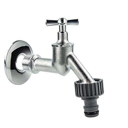 tecuro Auslaufventil 1/2 ZollKnebeloberteil, Steckkupplung, Wandrosette - Messing mattverchromt