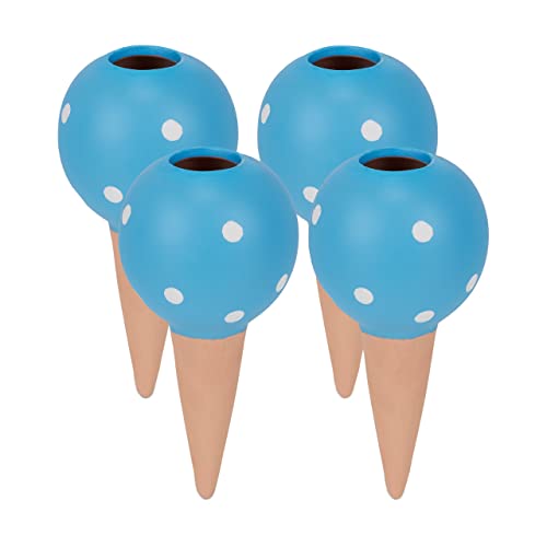 Relaxdays Tonkegel Bewässerung4er Set, Gießkegel für 1,5 l PET-Flaschen, Zimmerpflanzen, Balkonkästen, blau/terrakotta