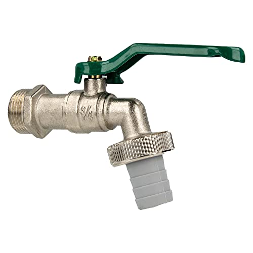 tecuro Auslaufhahn Kugelauslaufventil Zapfhahn 3/4" Wandanschluss - Griff grünMessing verchromt matt