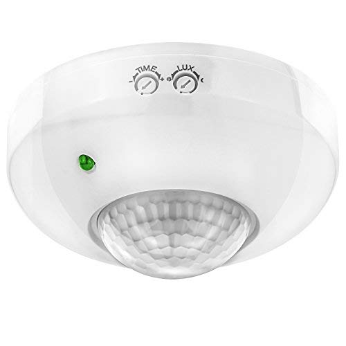 Bietet präzise Bewegungserkennung mit 360° Erfassungsbereich und integrierten Lichtsensor, ideal für die Deckenmontage in Innenräumen.