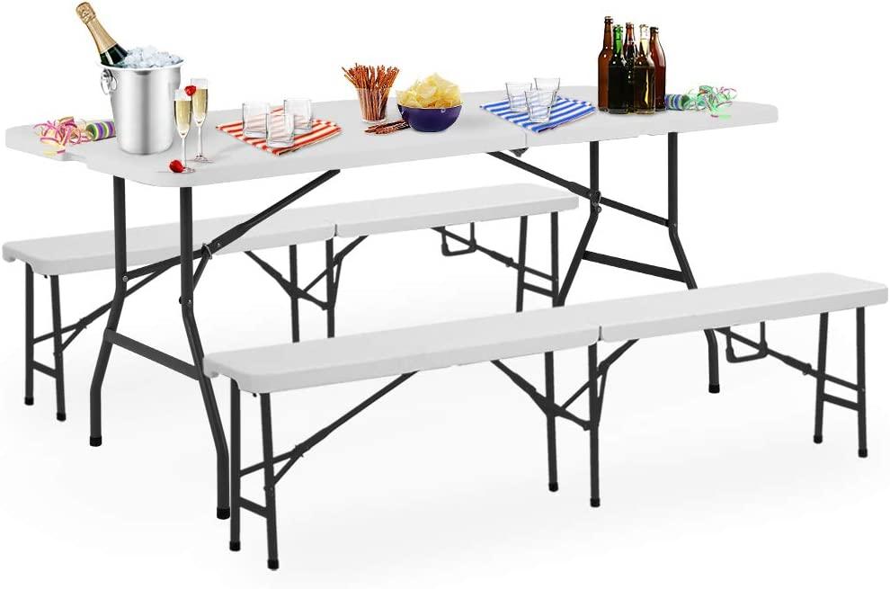 Casaria 'Malmö' Bierzeltgarnitur3-teilig, klappbar, Kunststoff weiß, 183 x 76 x 74 cm