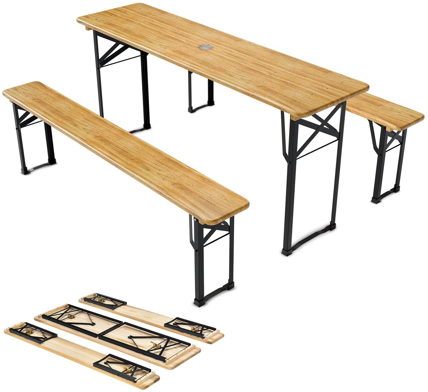 | Name | Juskys 'Bichl' Bierzeltgarnitur 3-teilig, klappbar, Holz / Metall natur, 170 x 46 x 77 cm |