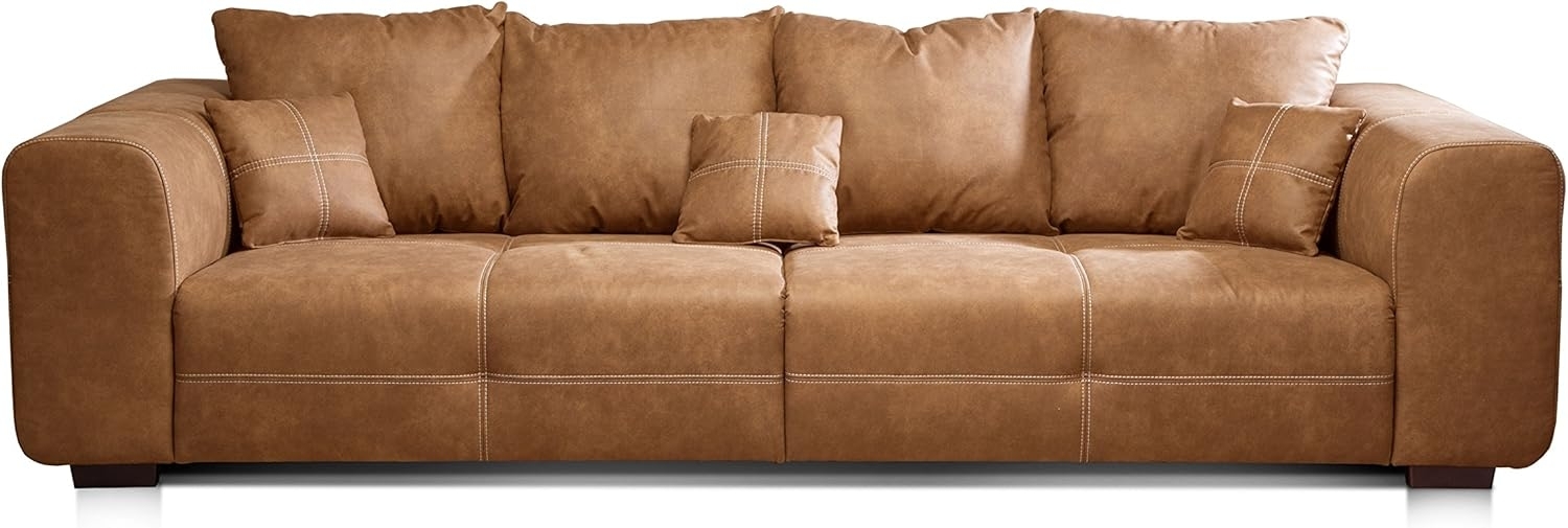 | Name | CAVADORE Big Sofa Mavericco / XXL Polstercouch im modernen Design in Lederoptik / Inklusive Rückenkissen und Zierkissen / 287 x 69 x 108 cm (BxHxT) / Mikrofaser Cognac |