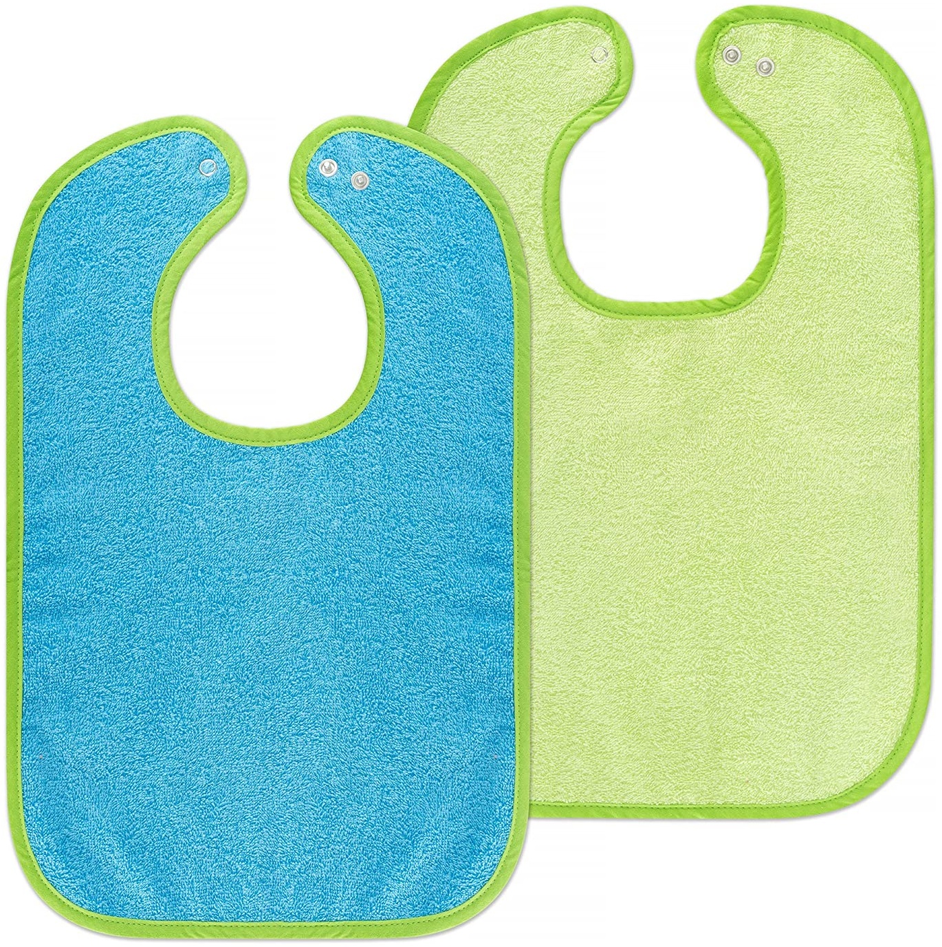 | Name | Wörner 2er Set - Baby Lätzchen/Kinderlätzchen mit Druckknopf/Größenverstellbar/Extra groß/Sehr saugfähig/Öko-Tex schadstoffgeprüft / 100% Baumwolle (Blau/Grün) |