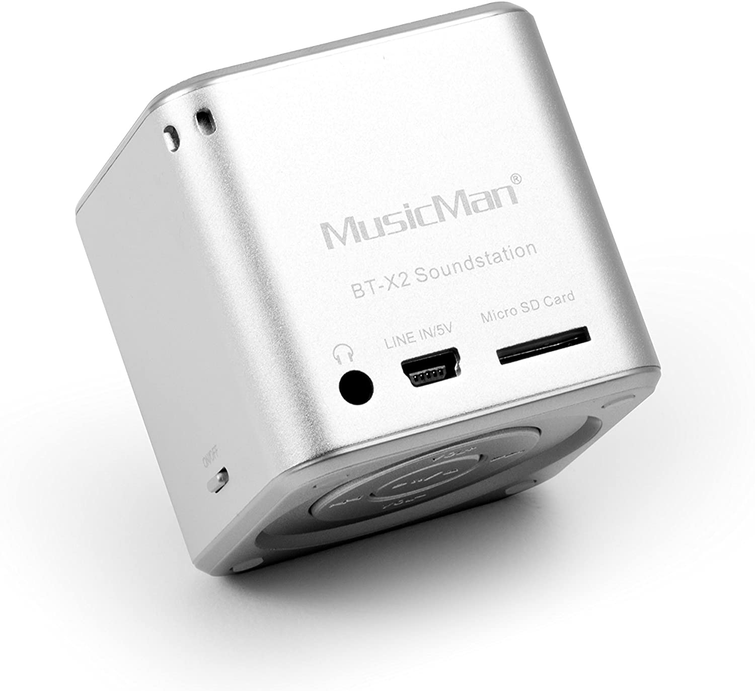 Der Technaxx MusicMan mini Wireless Soundstation BT-X2 Bluetooth-Lautsprecher mit Kartenleser ist ein kleiner, jedoch leistungsstarker Lautsprecher. Er bietet eine erstaunliche Soundqualität und kann über Bluetooth direkt vom Smartphone bespielt werden. Das Aufladen erfolgt einfach über das im Lieferumfang enthaltene USB-Kabel.