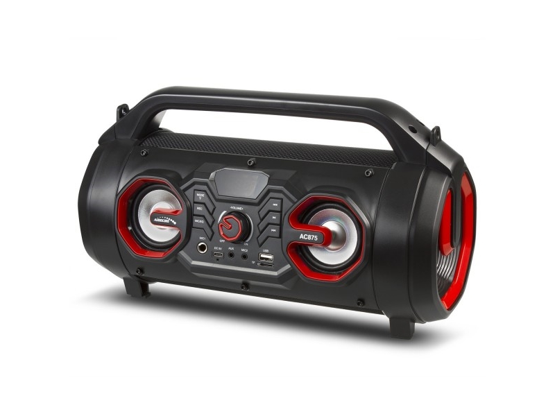 | Funktionen | Bluetooth, USB, AUX, MicroSD, FM Radio, Equalizer, Aufnahme-Modus, LED-Beleuchtung, Fernbedienung |